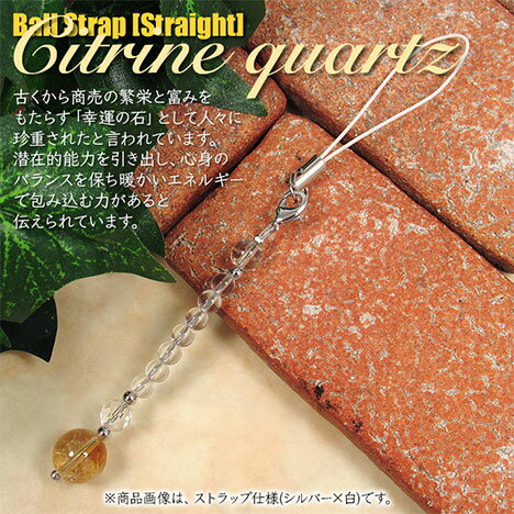 《11月の誕生石》シトリンクォーツ[黄水晶]・丸玉ストレートストラップ(携帯ストラップ/スマートフォンアクセサリー/イヤホンジャック/スマホピアス)・パワーストーン・天然石・お守り・開運・☆暖かいエネルギーで包み込む石☆ パワーストーン専門店 GRAVEL